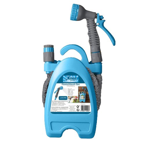 Komplekte yra purškimo pistoletas su 7 skirtingomis vandens purškimo funkcijomis, leidžiančiomis lengvai pritaikyti vandens srovę pagal poreikį – nuo švelnaus rūko iki stipresnės srovės. Taip pat pridedamas sieninis laikiklis, padedantis patogiai laikyti žarną po naudojimo.