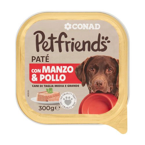 Visavertis suaugusių šunų paštetas su jautiena ir vištiena CONAD PETFRIENDS, 300 g